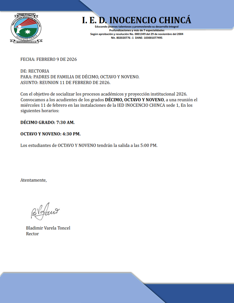 El diligenciamiento del presente formulario de inscripción no compromete a la Institución Educativa Distrital Inocencio Chincá en la asignación de cupos para el grado escogido. El aspirante debe realizar todo el proceso de admisión y cumplir con los requerimientos institucionales. La admisión de estudiantes nuevos estará supeditada a los cupos disponibles en cada grado de la institución. Proximamente se publicará la lista de los aspirantes que continúan en el proceso de admisión.